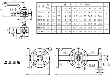KHB3K型高壓三通球閥是依據(jù)國外資料研制而成,主要用于液壓管路中控制油液、氣的流通、流向和截止。本系列高壓多路球閥具有流阻損失小、密封性能可靠、操作方便、外觀精美等特點(diǎn)。本系列多路球閥主要由閥體、球體、閥桿、手柄和密封裝置等組成。閥體采用鋼質(zhì)鍛件,表面鍍鉻。同時(shí)也提供不銹鋼球閥。本系列高壓球閥主要有二種連接方式:內(nèi)螺紋連接、法蘭連接