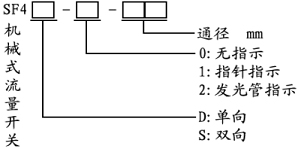 SF4型機械式流量開關(guān)用于測量流經(jīng)管道的液體流動狀態(tài), 如:水、油、乙稀、乙二醇等對銅無腐蝕作用的液體。是一種新型的檢測裝置,廣泛用于水電站供水系統(tǒng)斷水保護(hù)。采用日本歐姆龍微動開關(guān),動作輕巧。 二、型號說明
