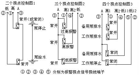 2)、二個(gè)報(bào)警信號(hào):接點(diǎn)為常開,位置出廠設(shè)置在最高和最低位置;三個(gè)報(bào)警信號(hào):均為常開,高2設(shè)在 50%,四個(gè)報(bào)警信號(hào):高1高2為常開、低11低12為常閉,高2設(shè)在85%、低12設(shè)在15%,接線端見下圖,若有不同要求請(qǐng)說明,報(bào)警位置用戶也可自行調(diào)整。